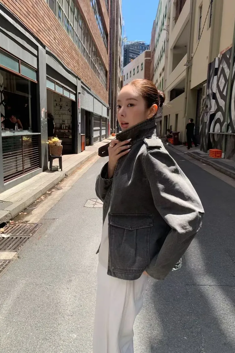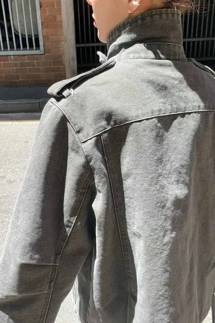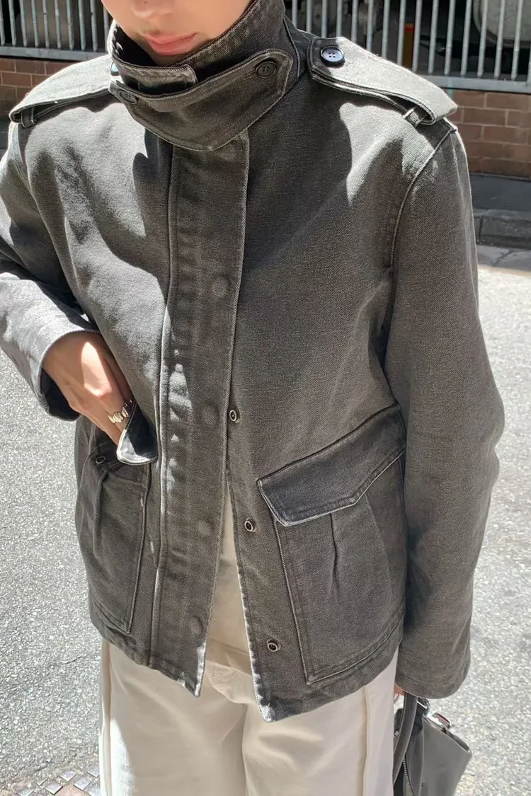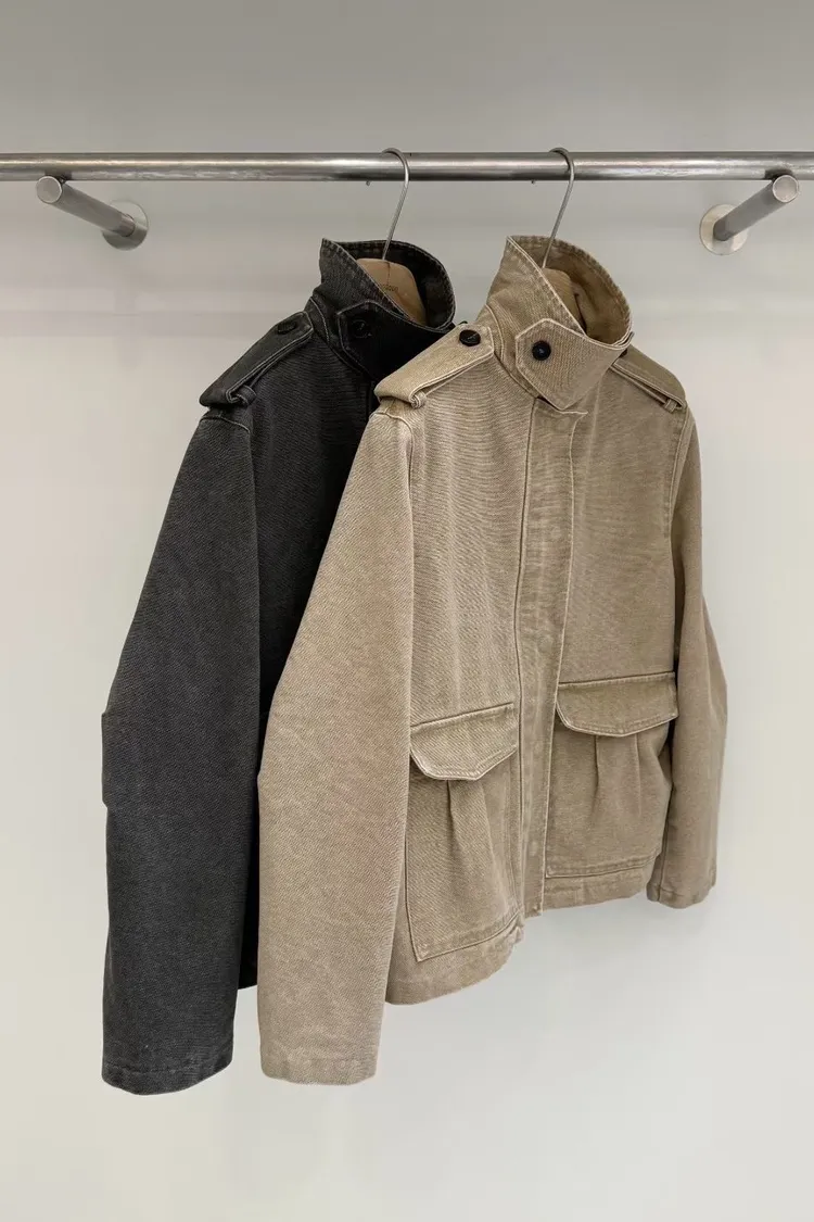 立領工裝洗舊夾克