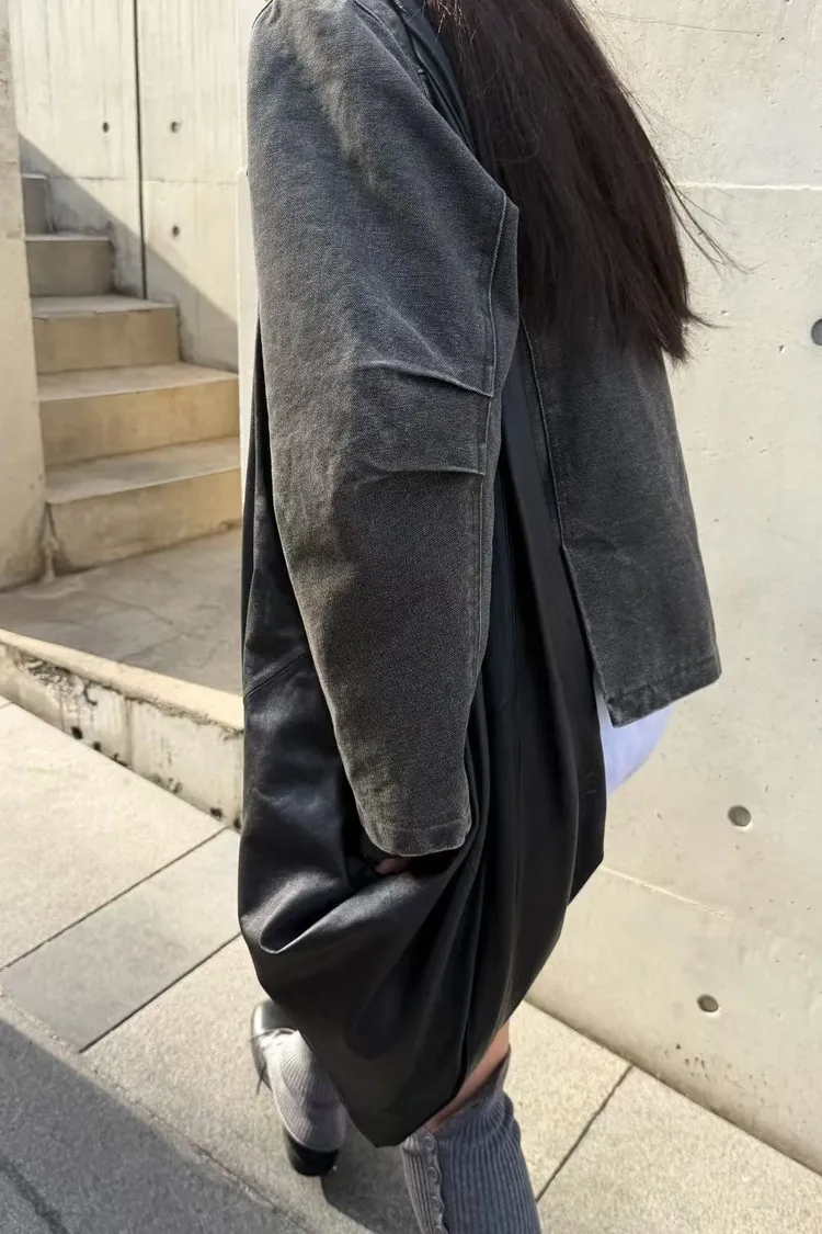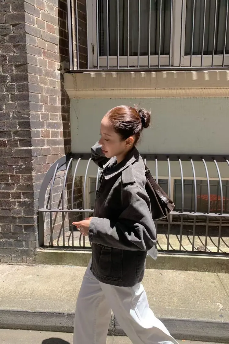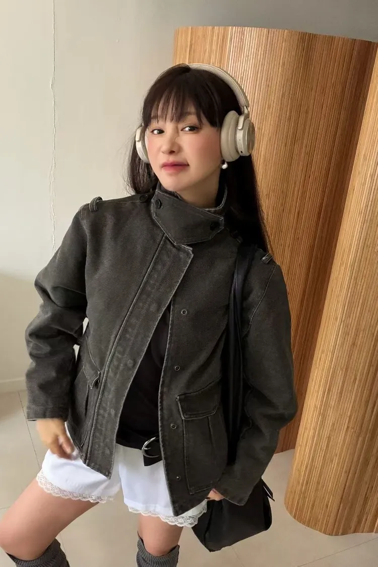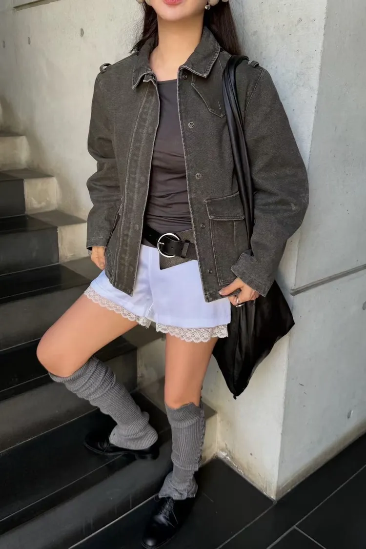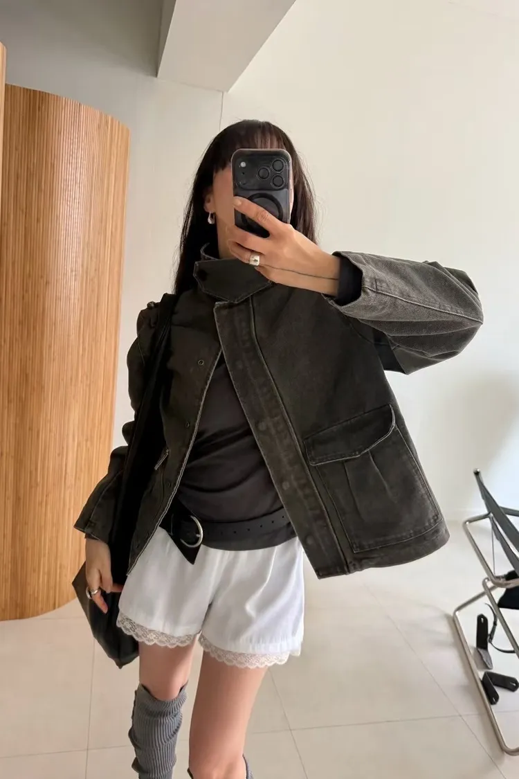 立領工裝洗舊夾克