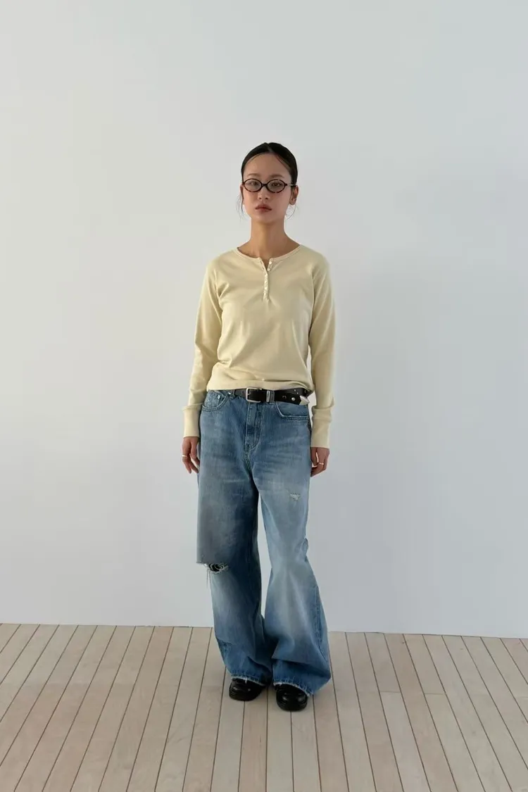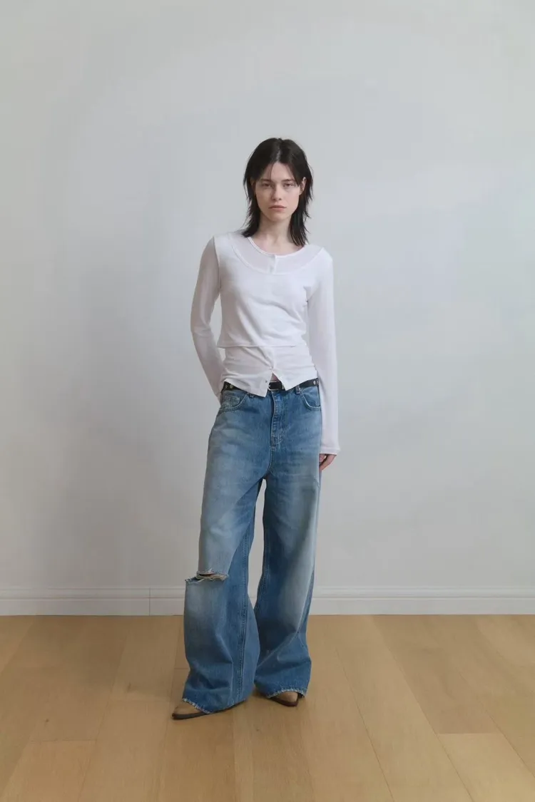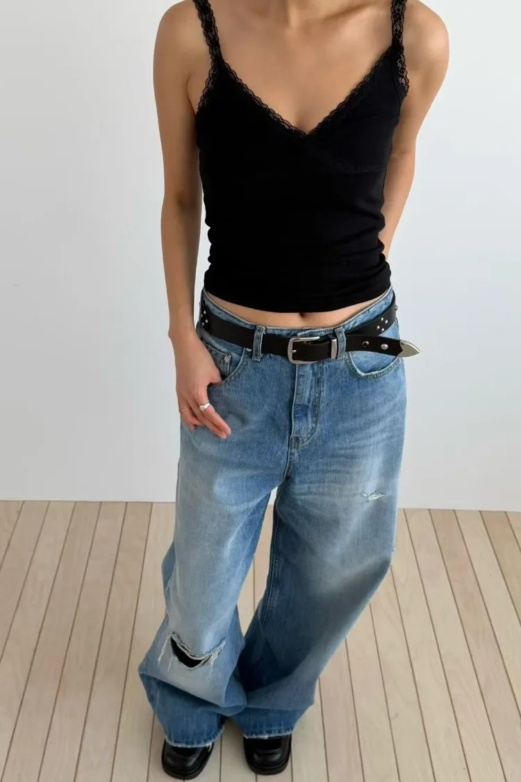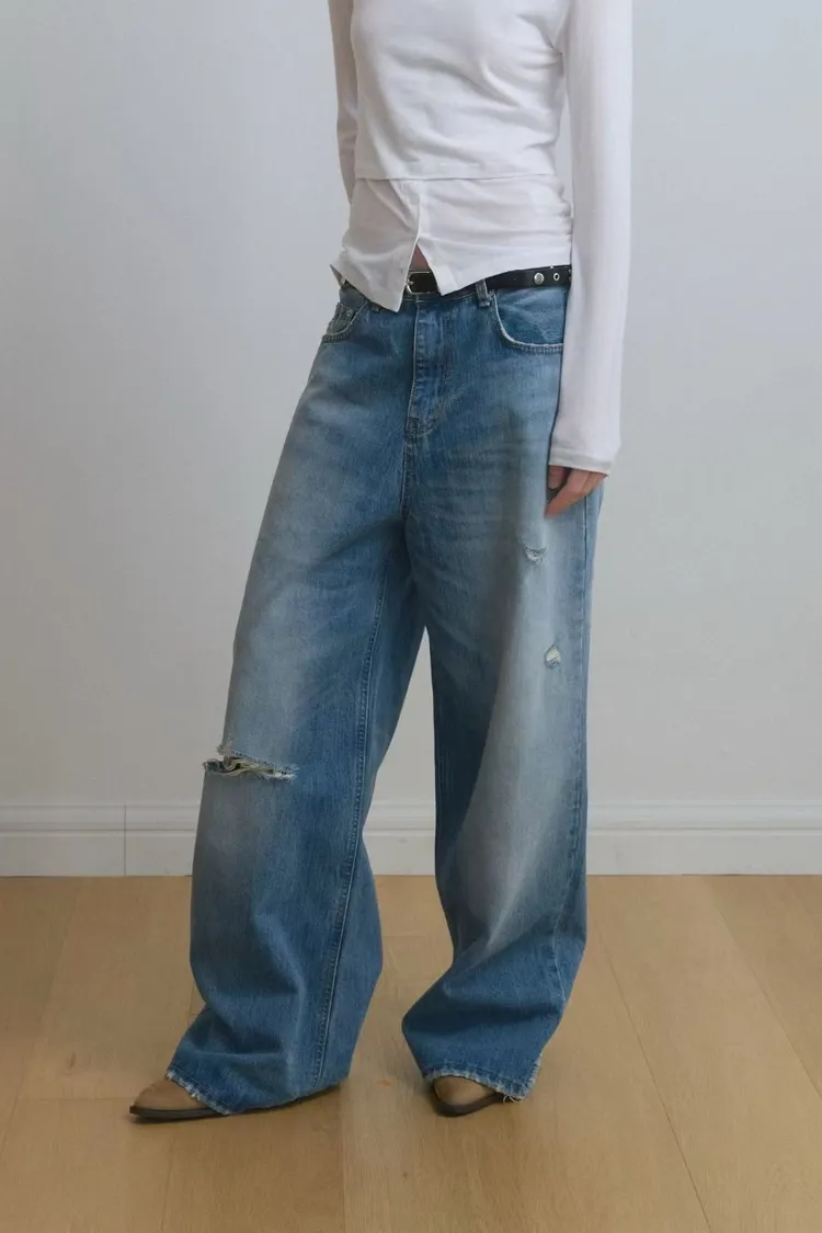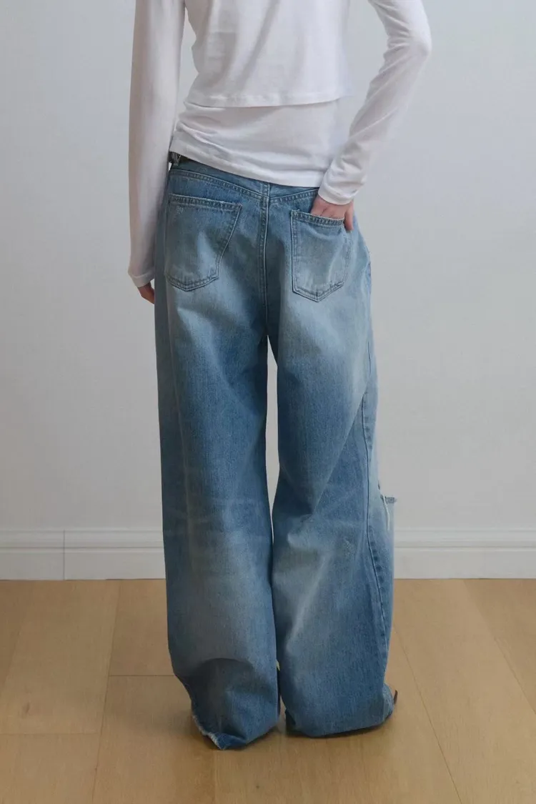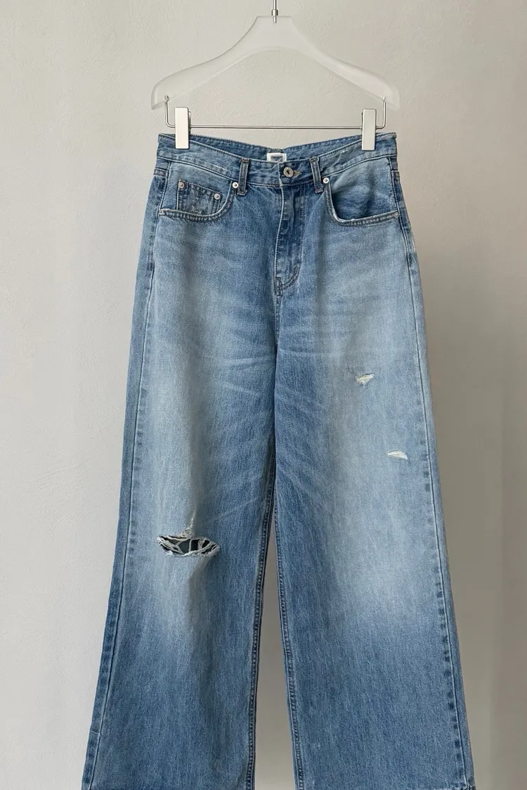 刷破直筒單寧寬褲