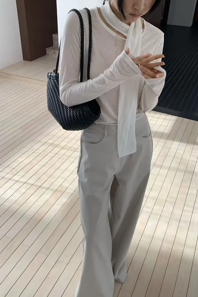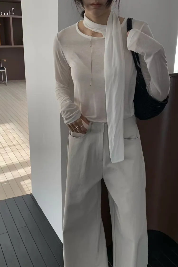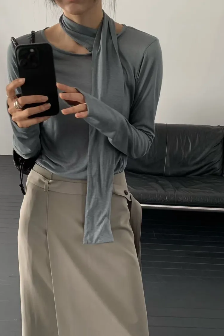 圍巾領透膚上衣
