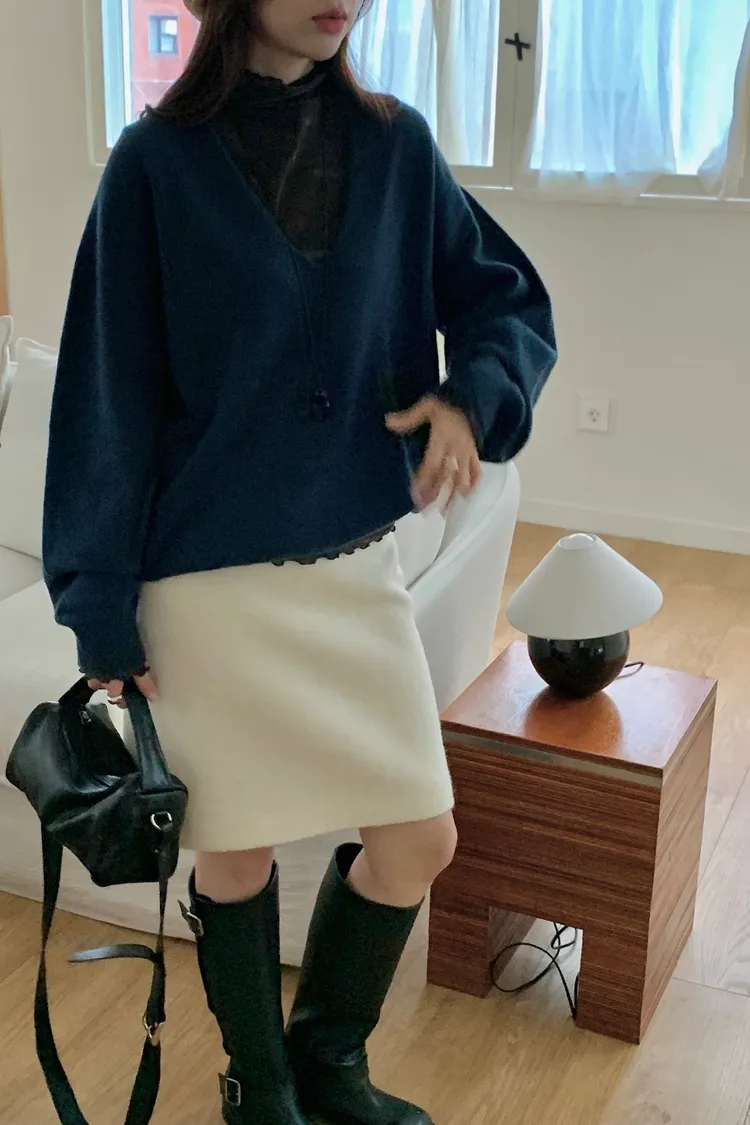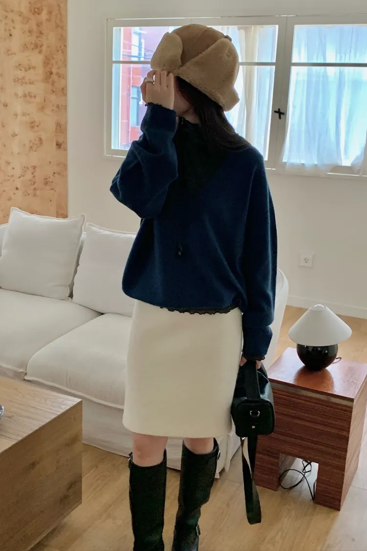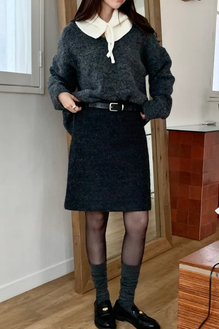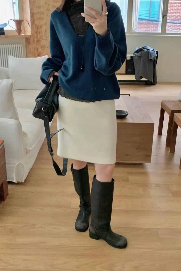毛料膝上半裙