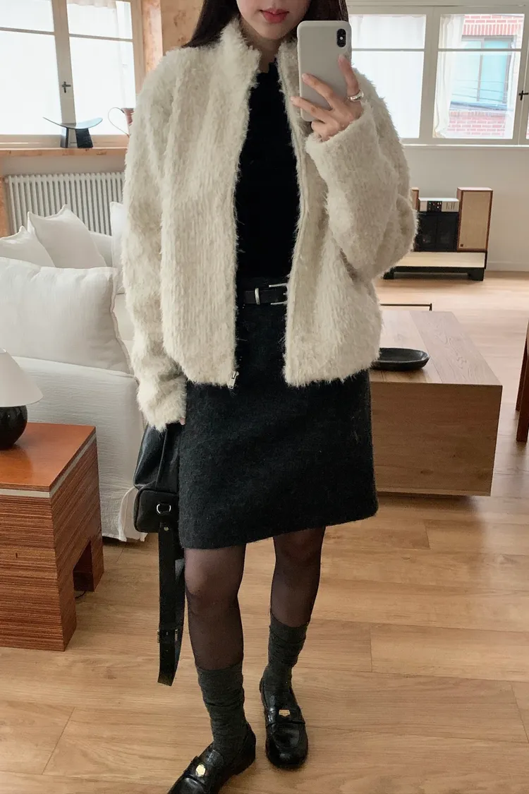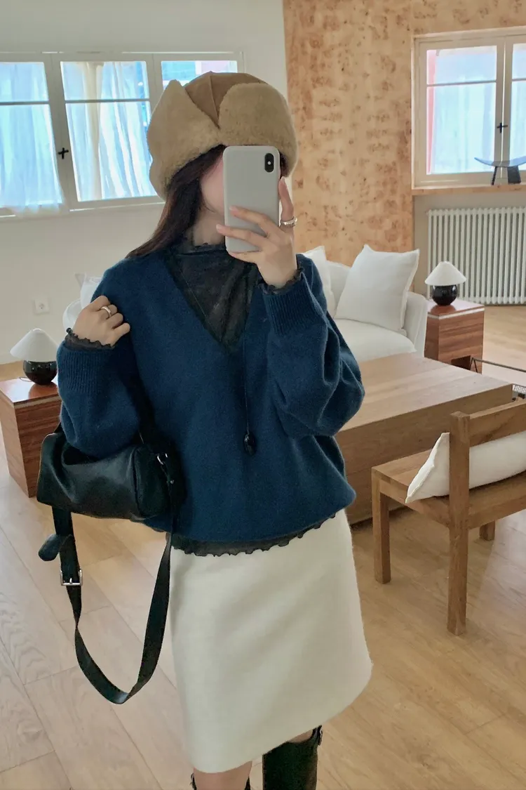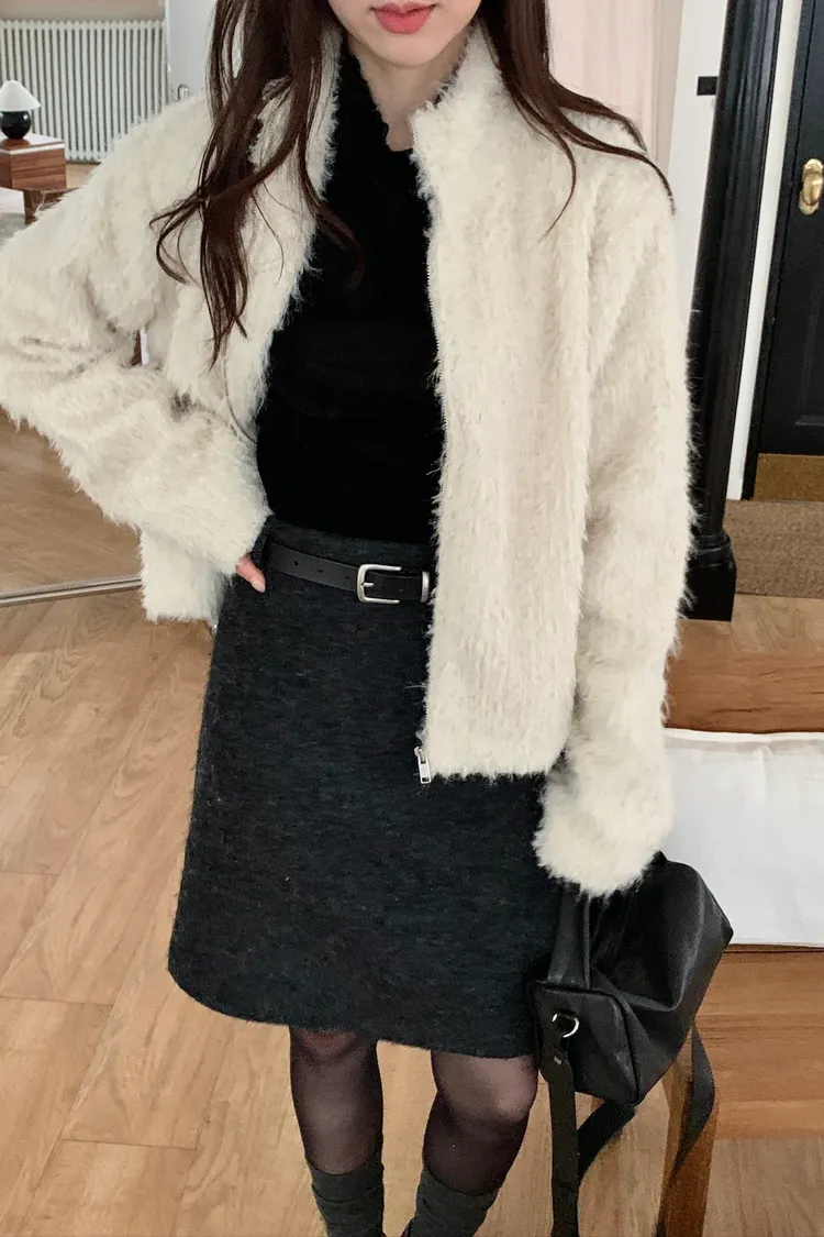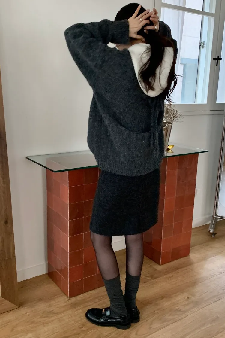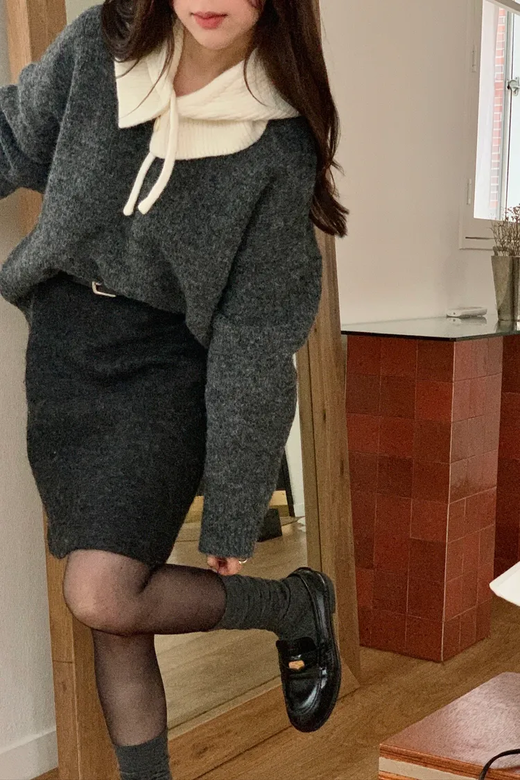 毛料膝上半裙