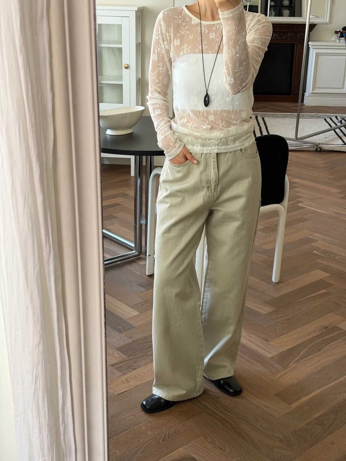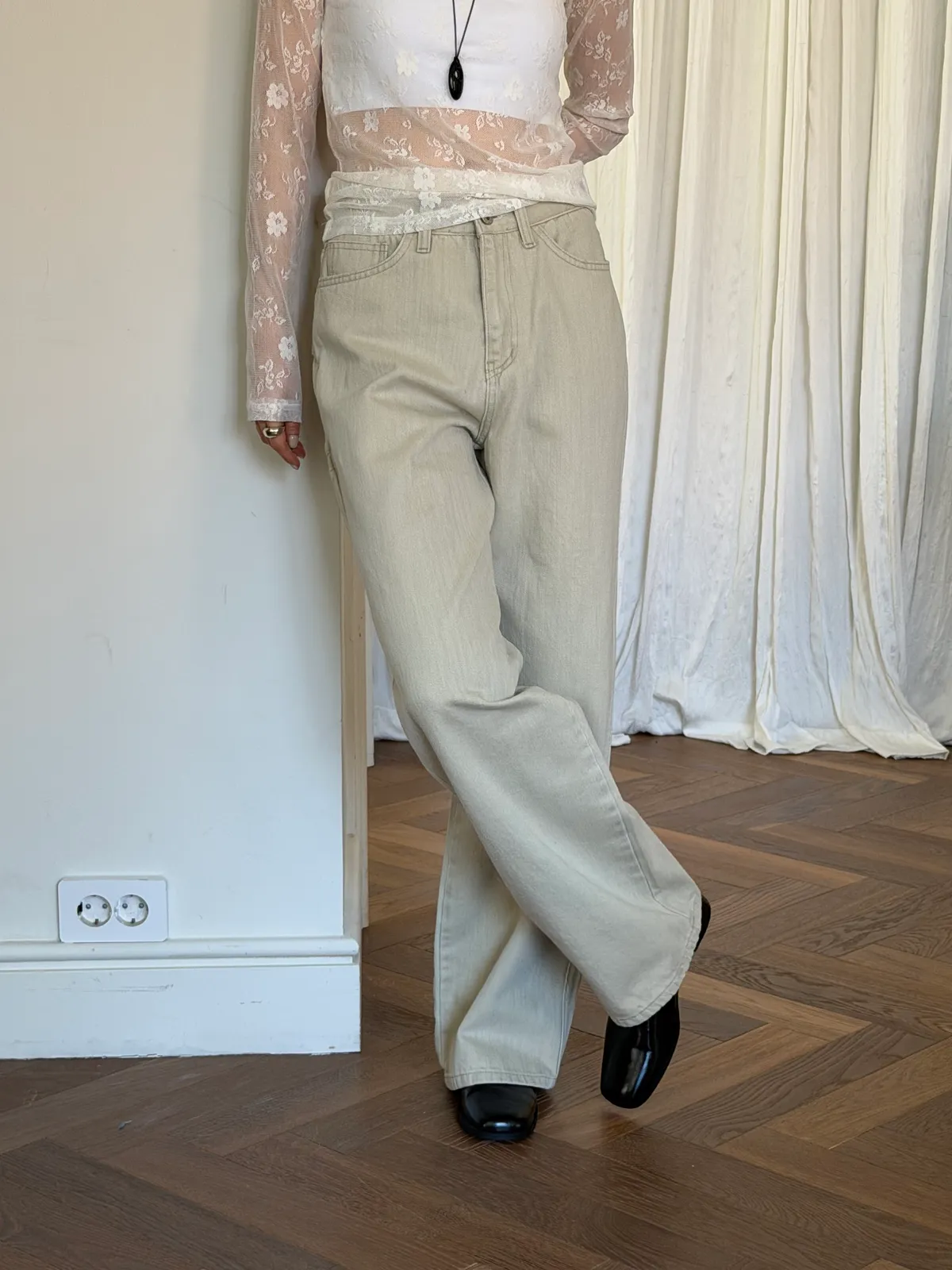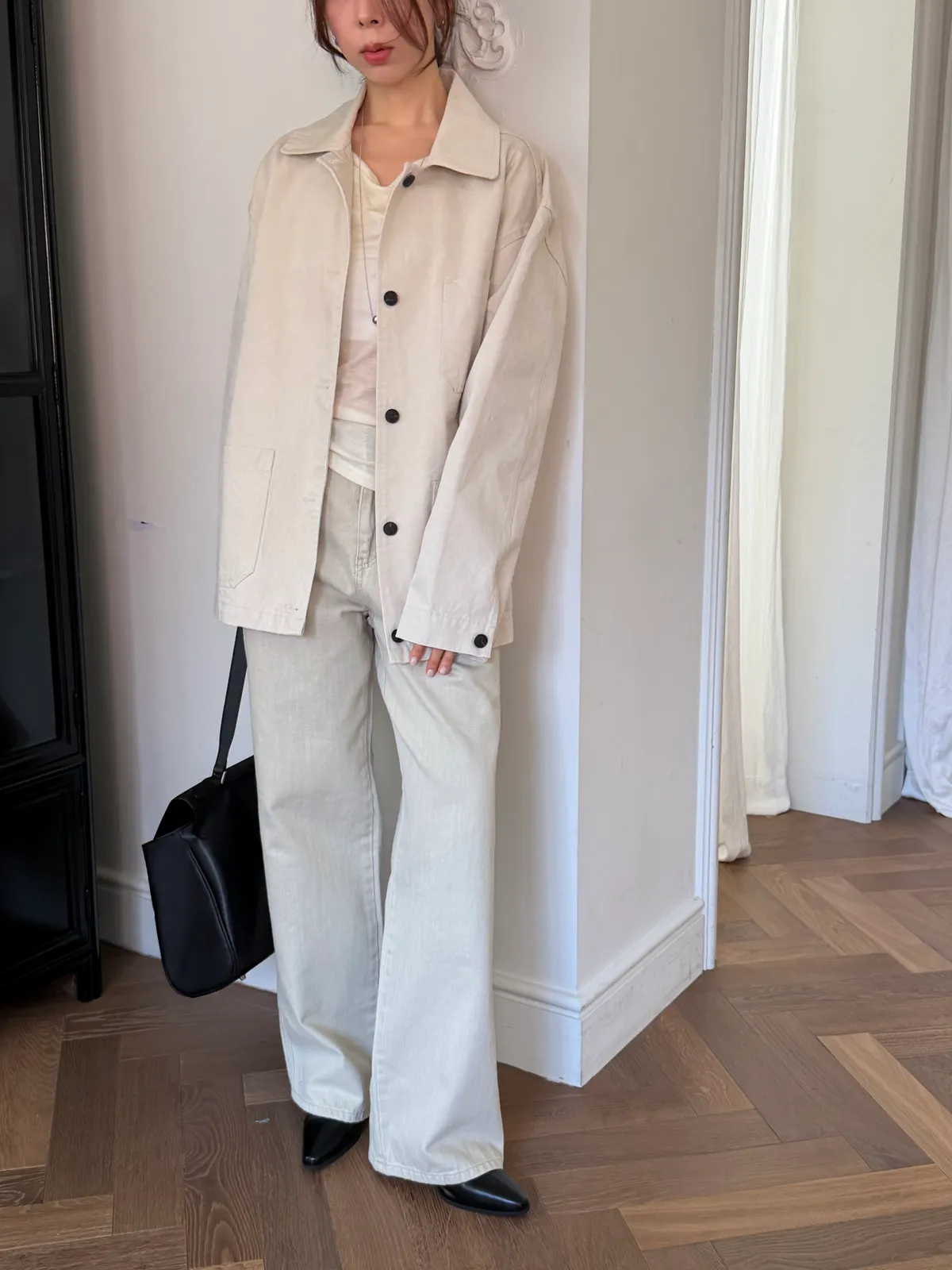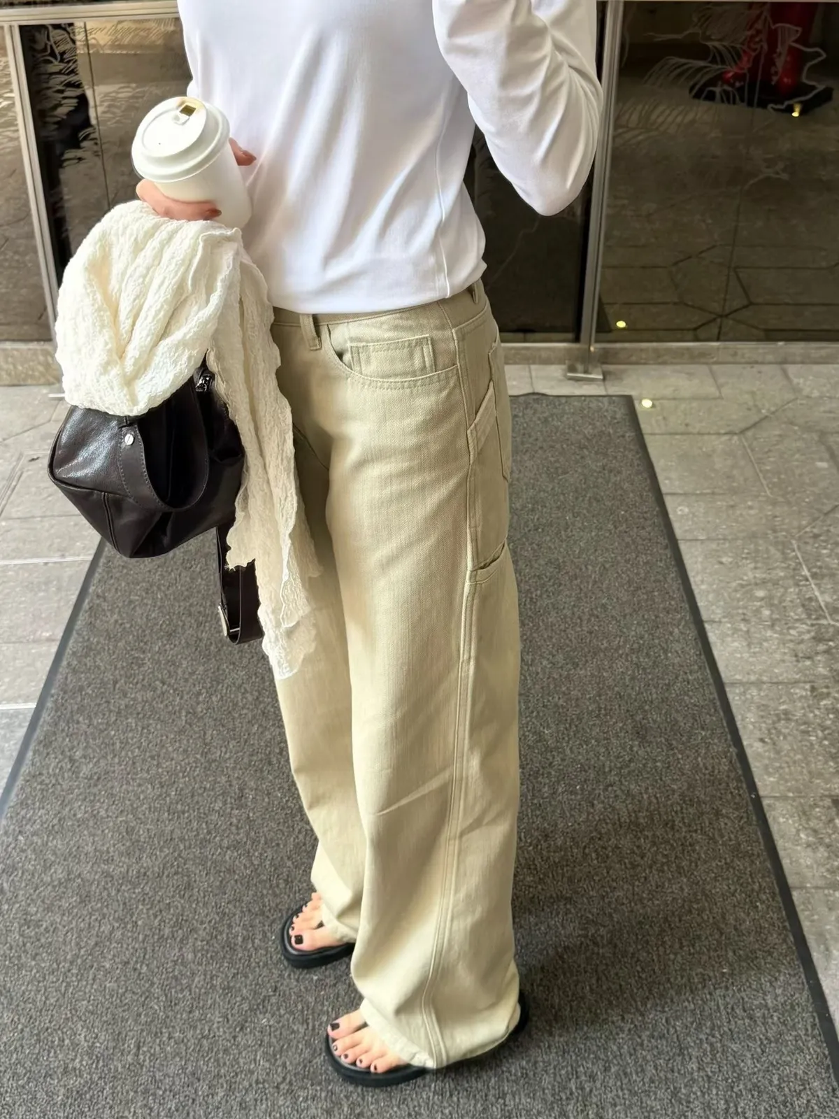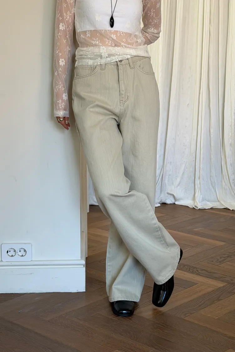 淺卡其修身微喇叭褲