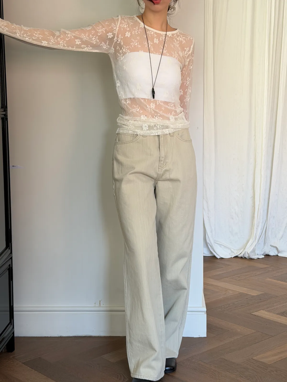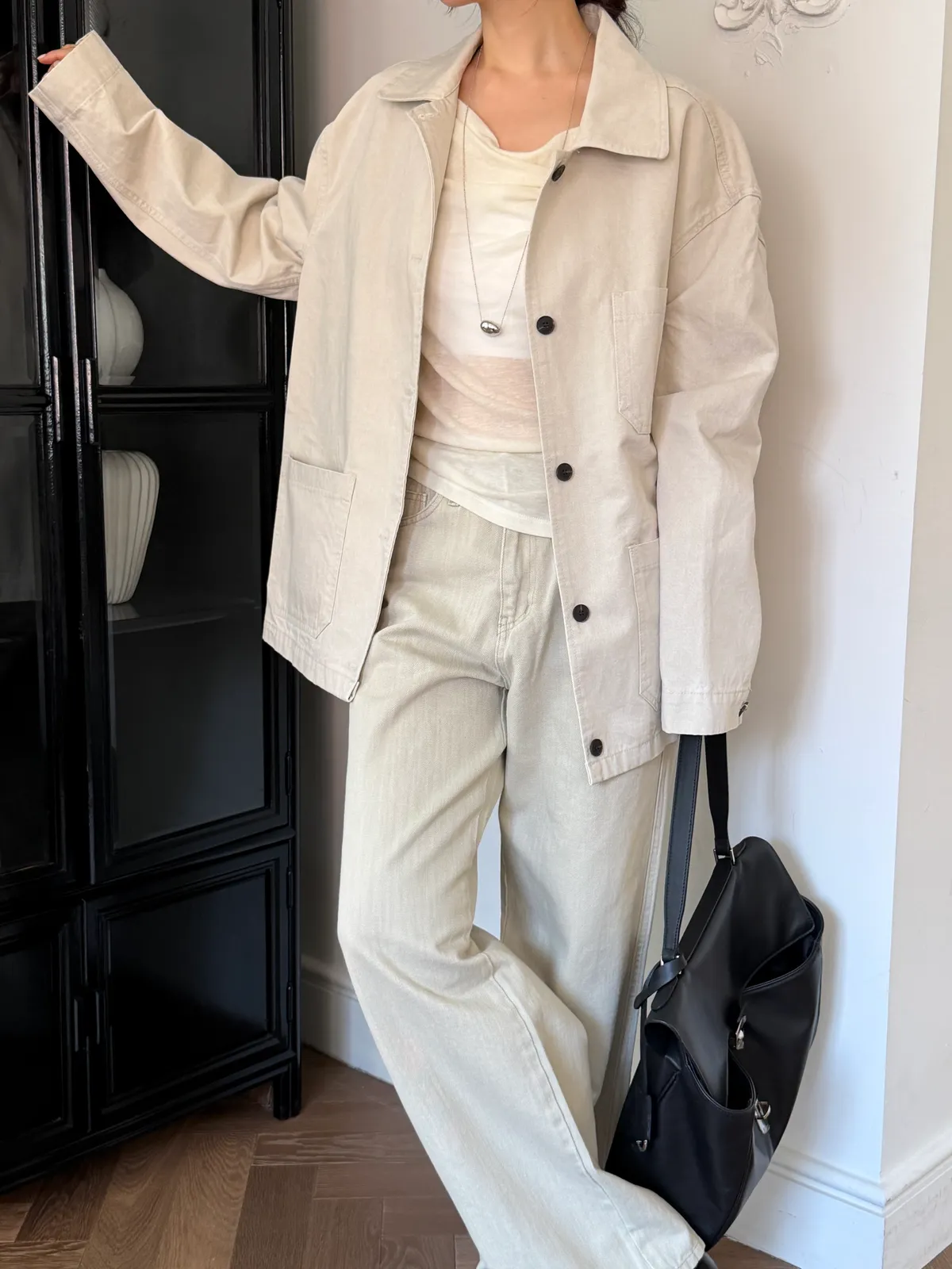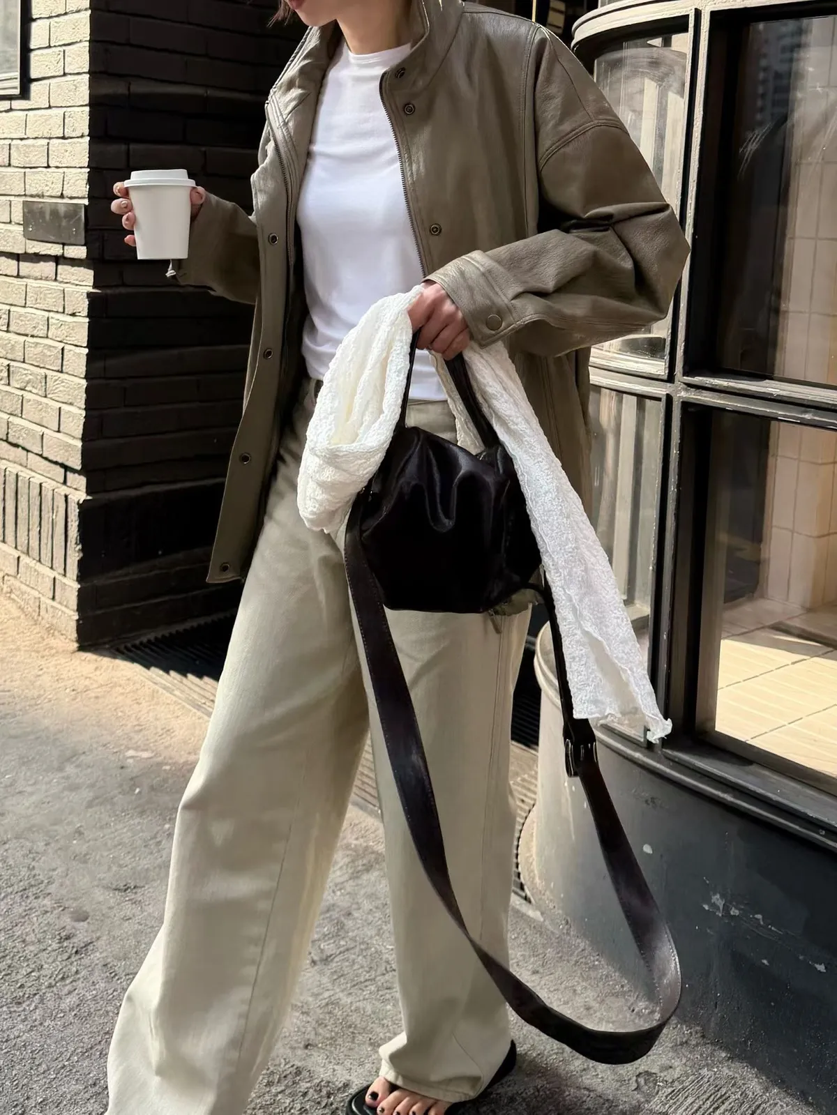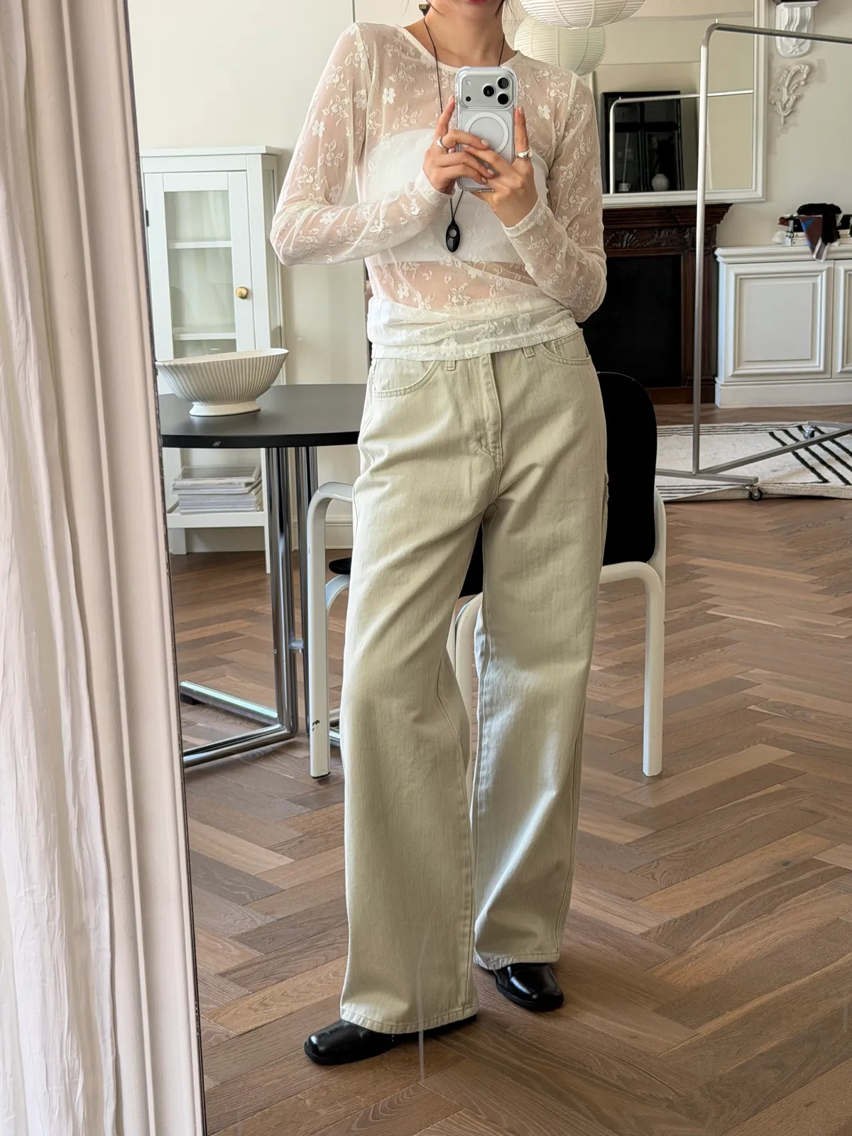 淺卡其修身微喇叭褲