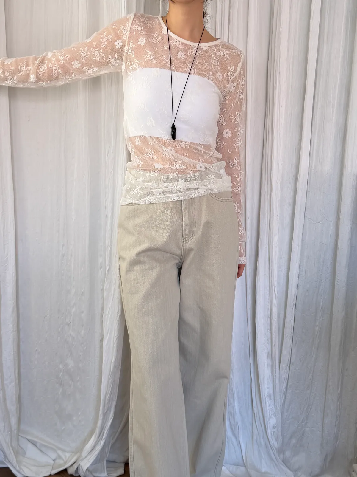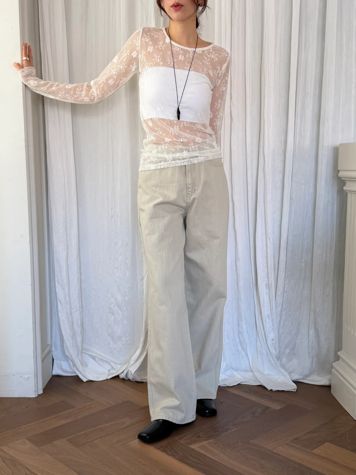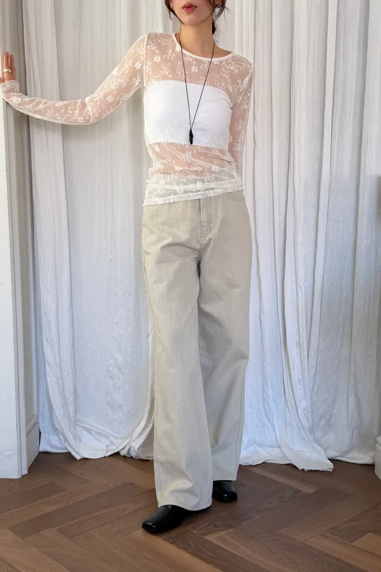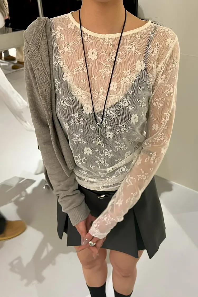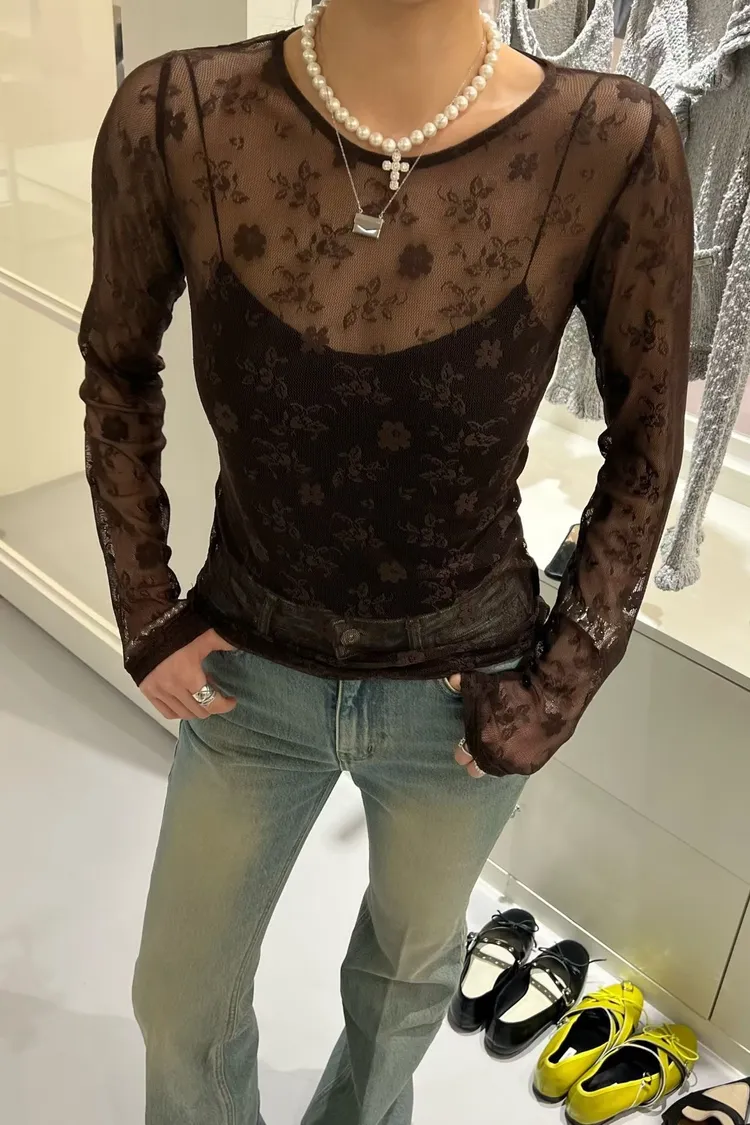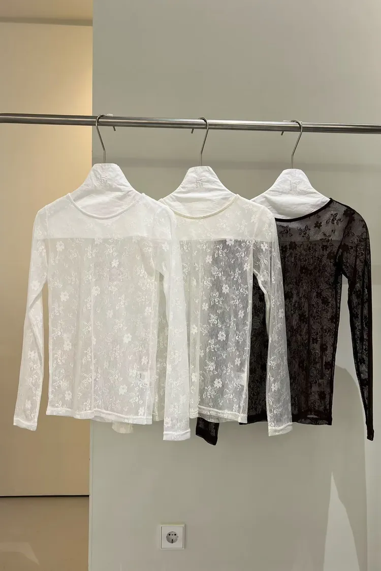 蕾絲透膚彈性上衣