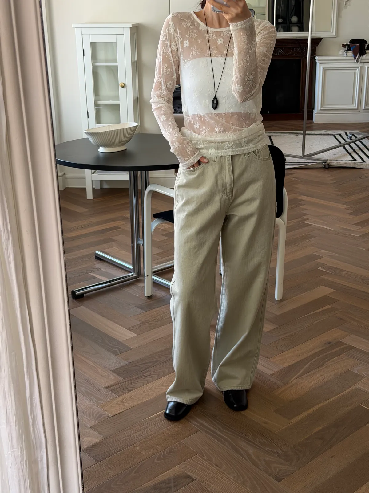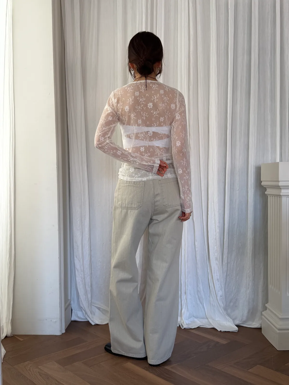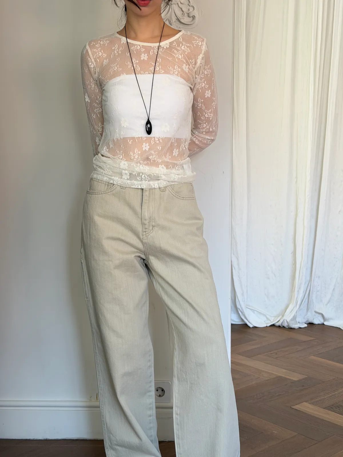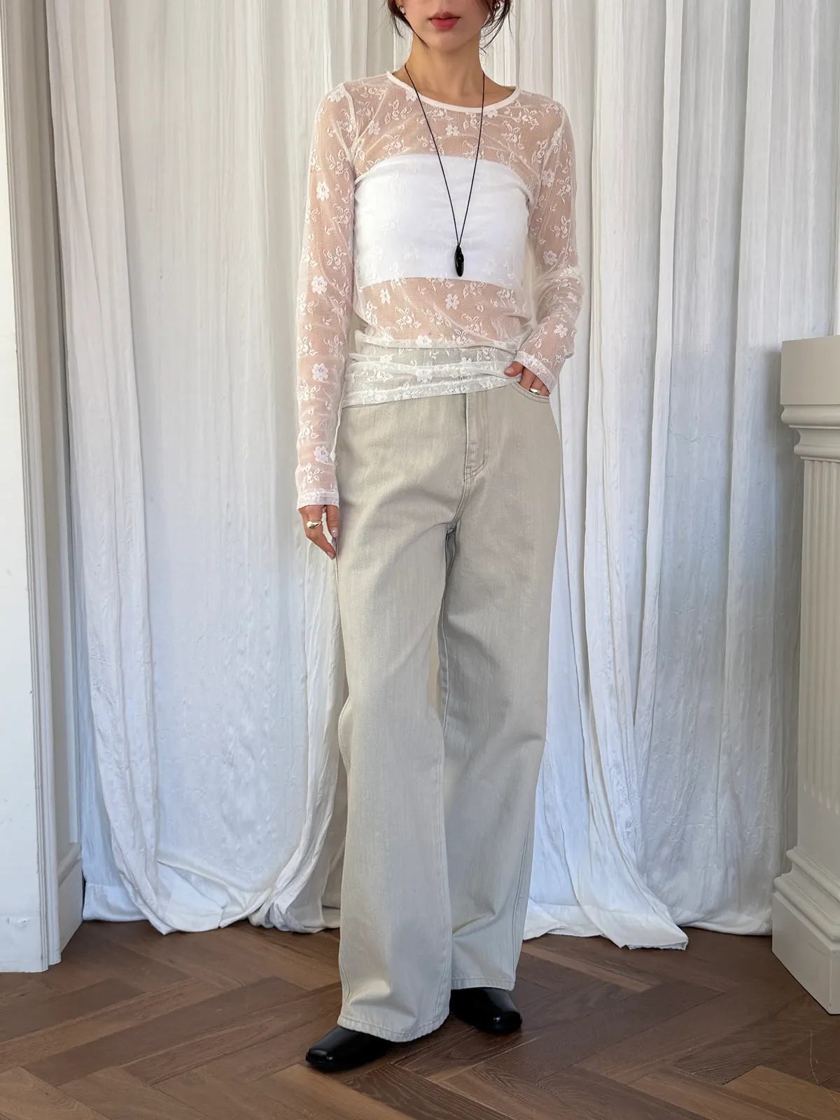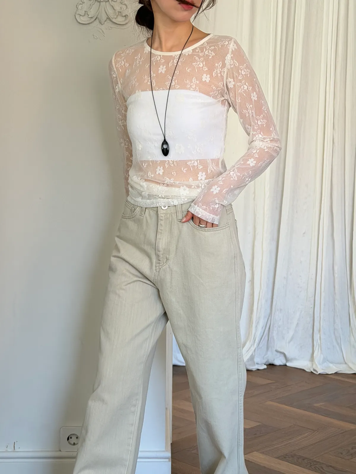 蕾絲透膚彈性上衣