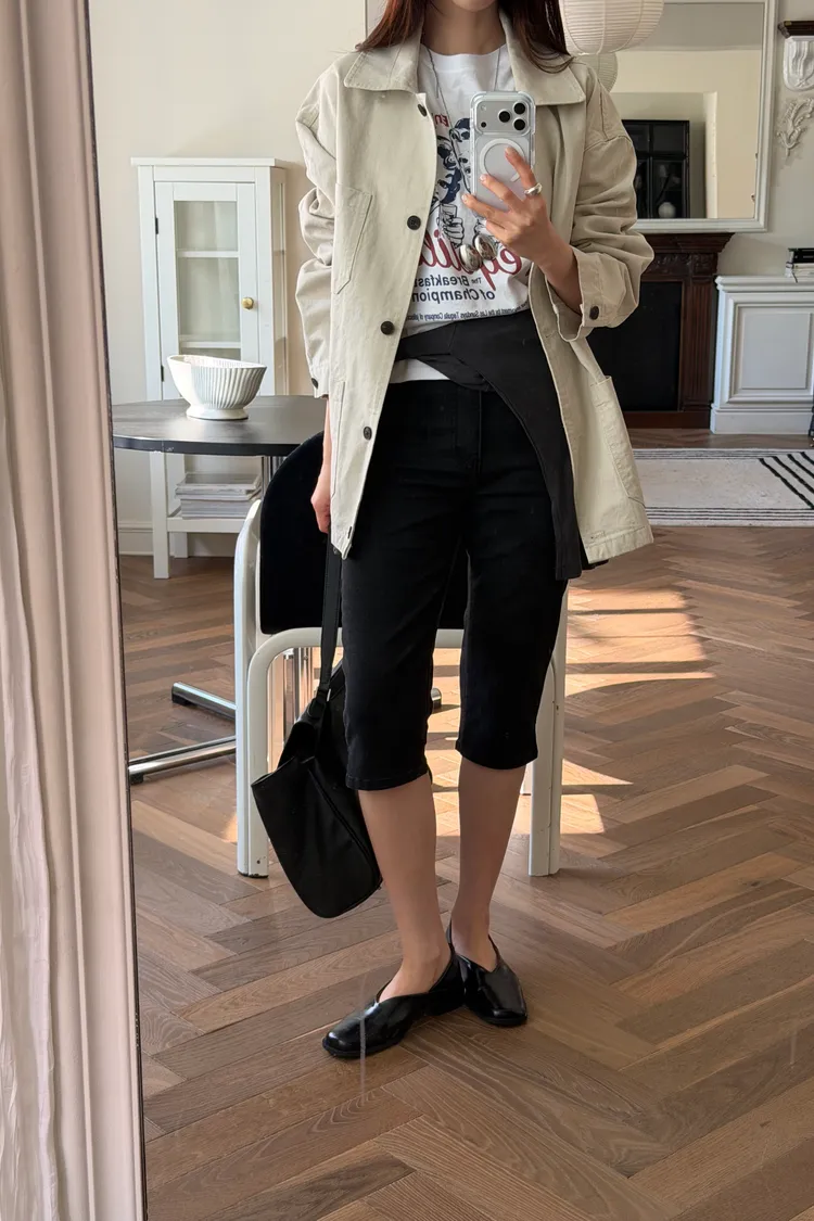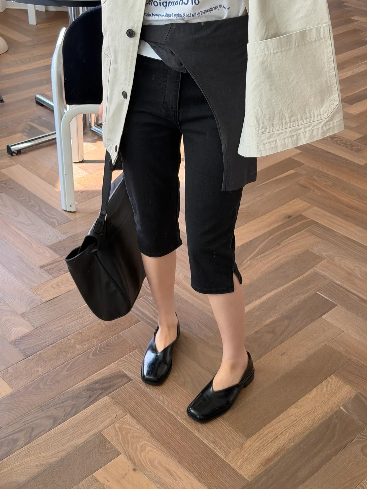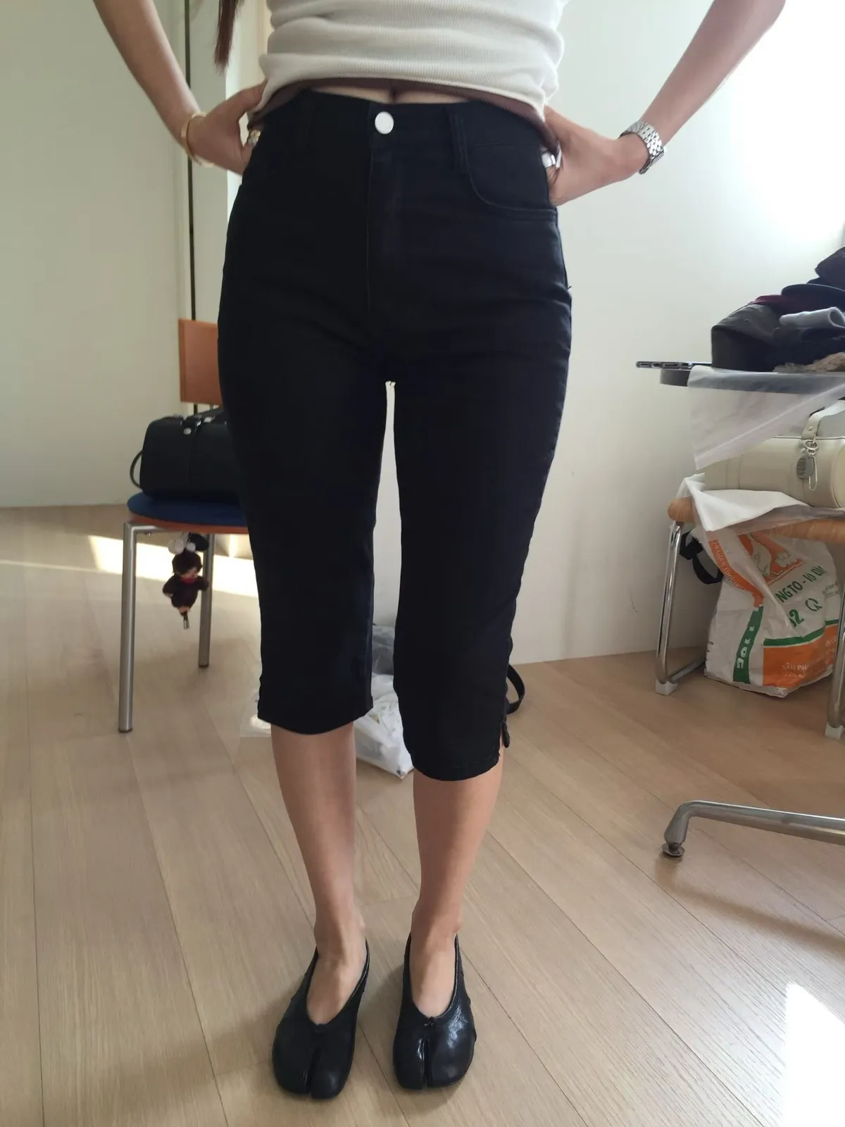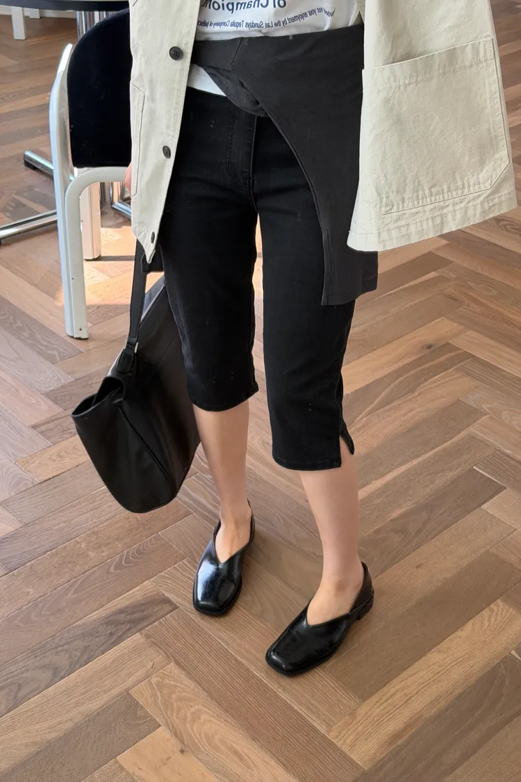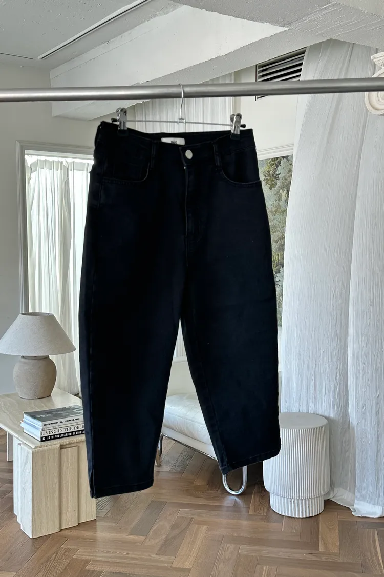 霧黑六分單寧褲