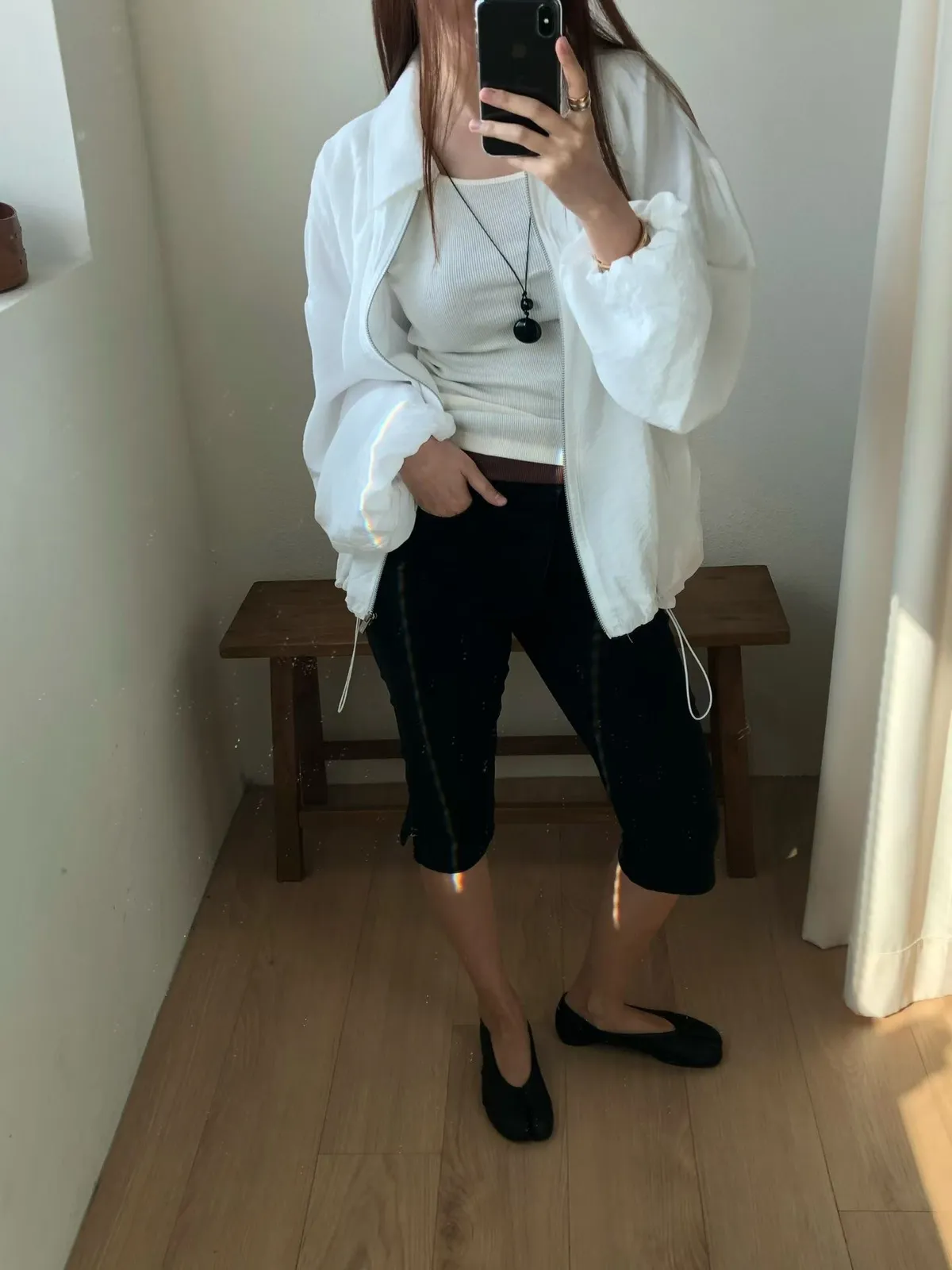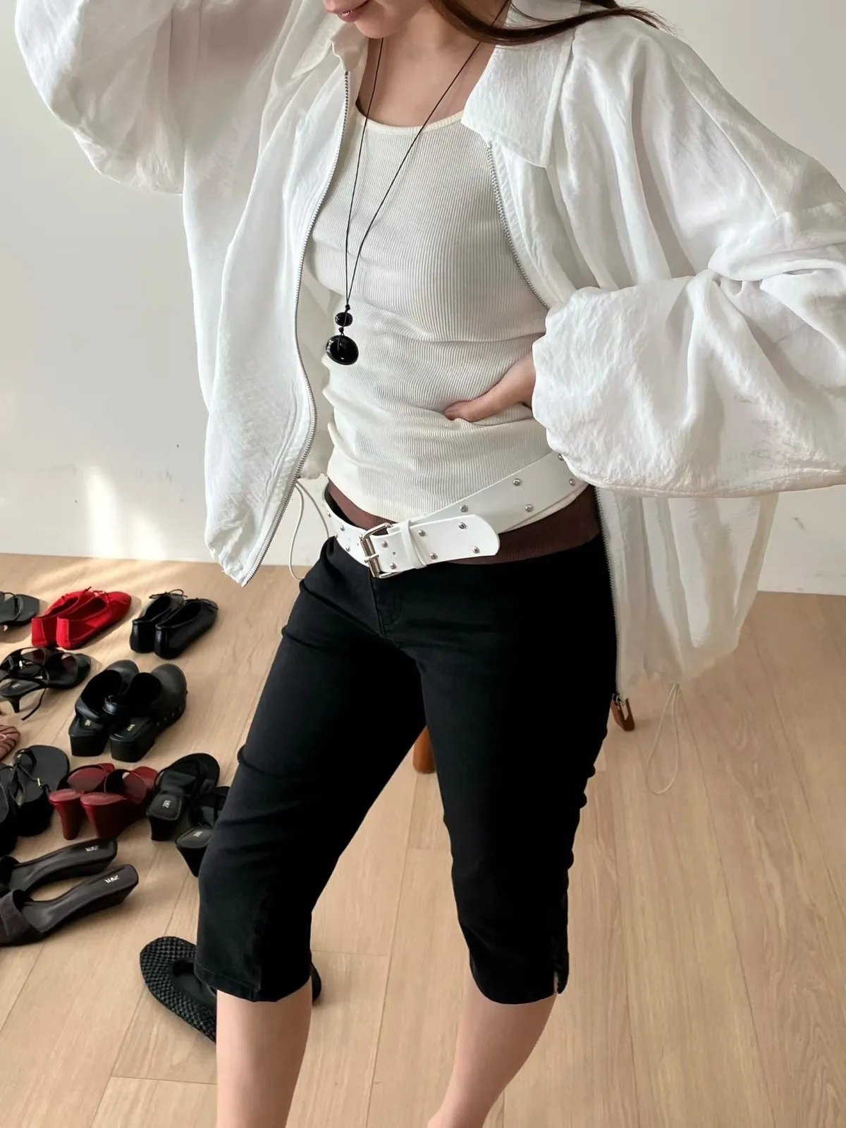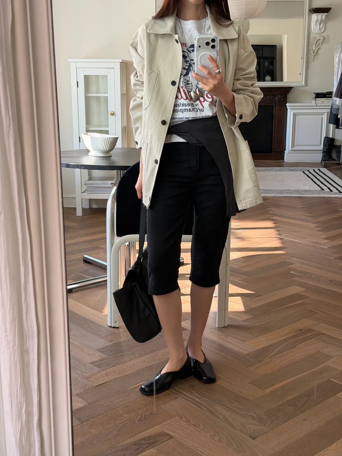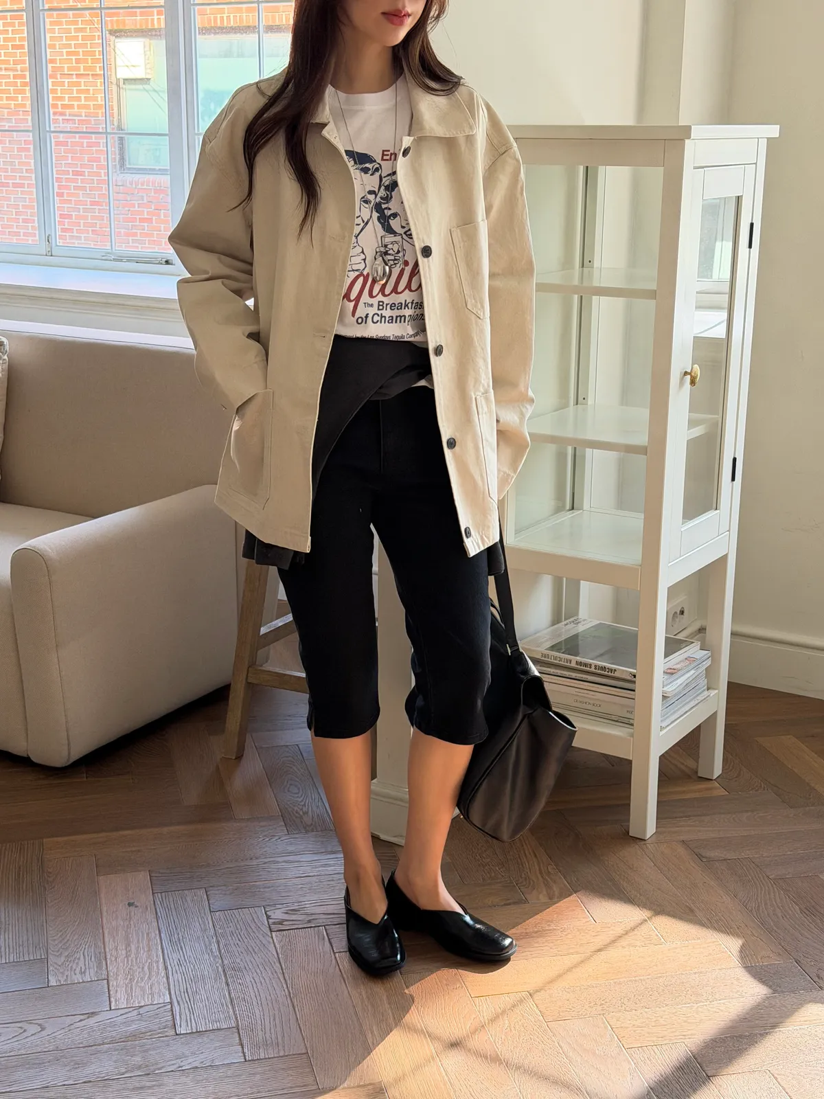 霧黑六分單寧褲