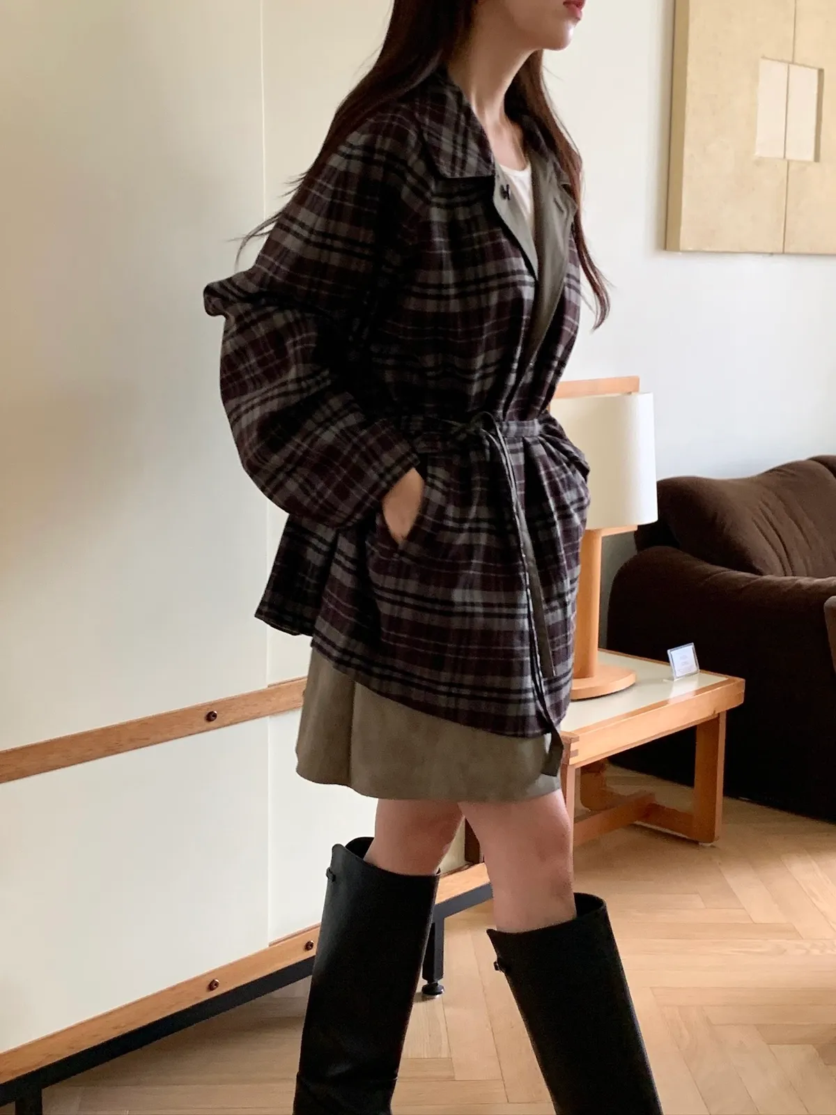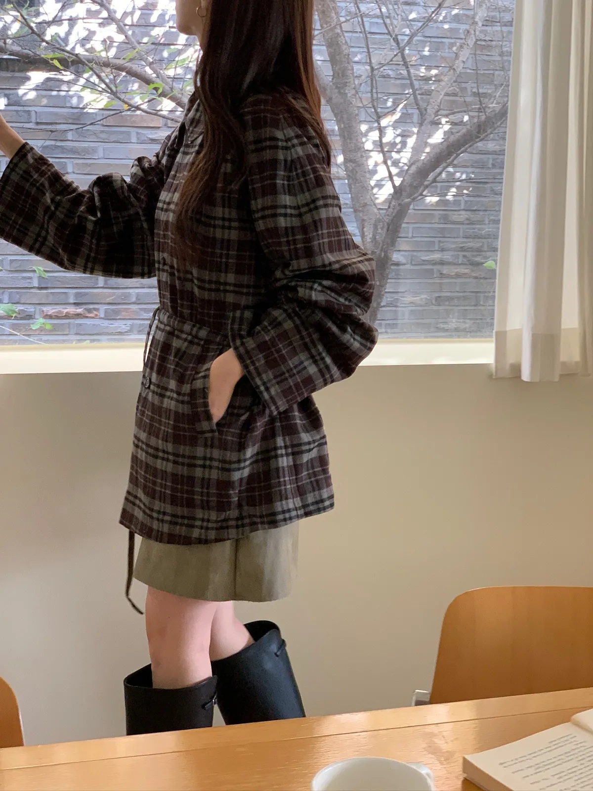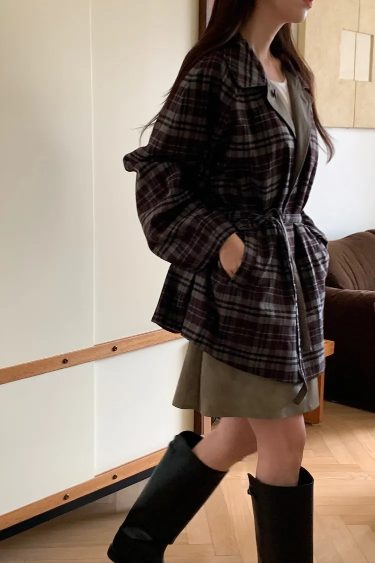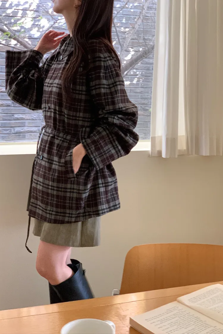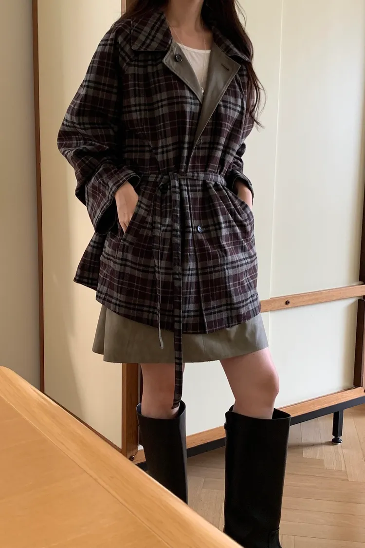 法蘭絨格紋兩穿大衣