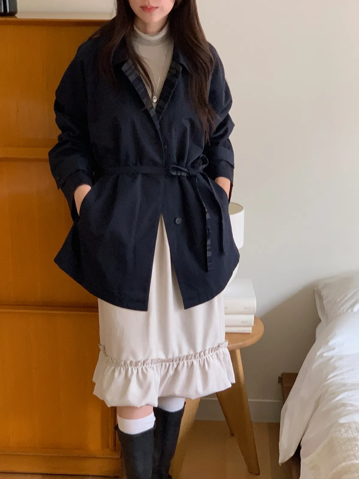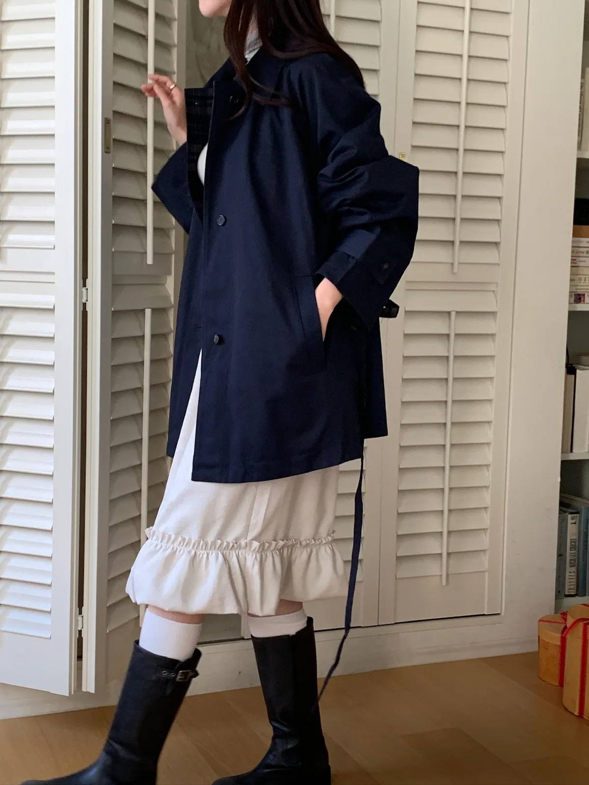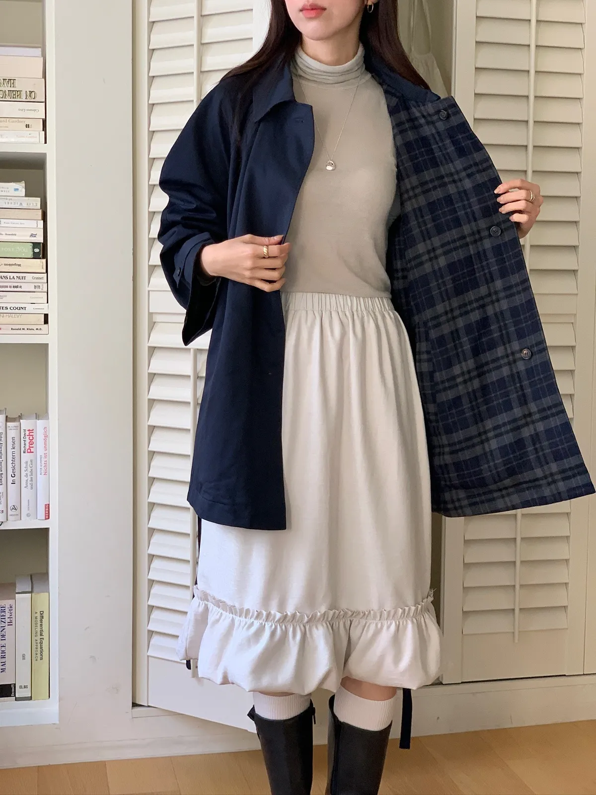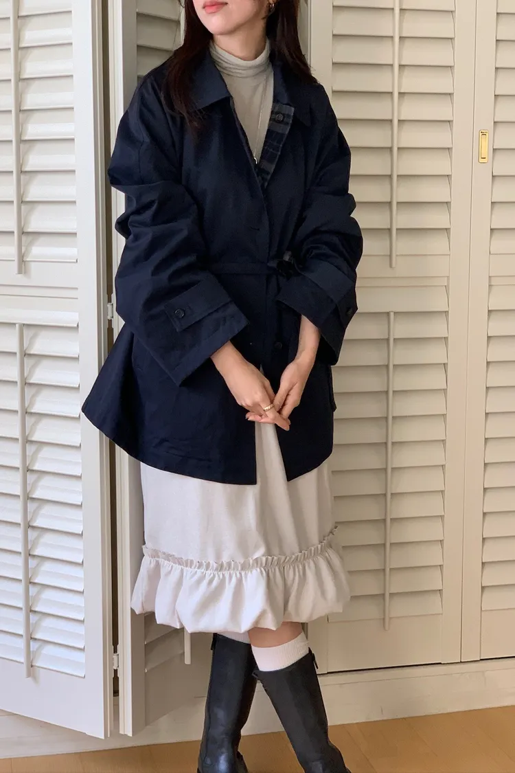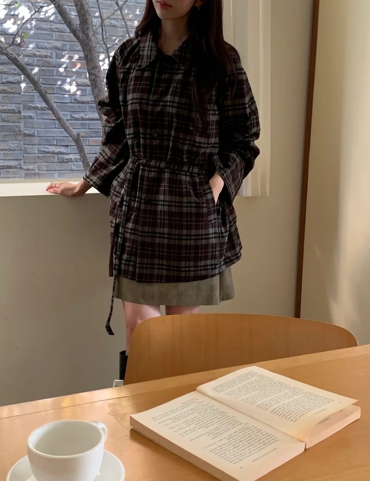 法蘭絨格紋兩穿大衣