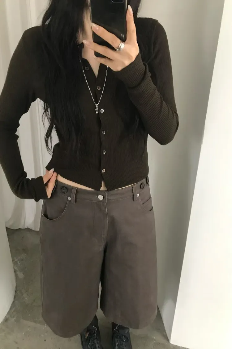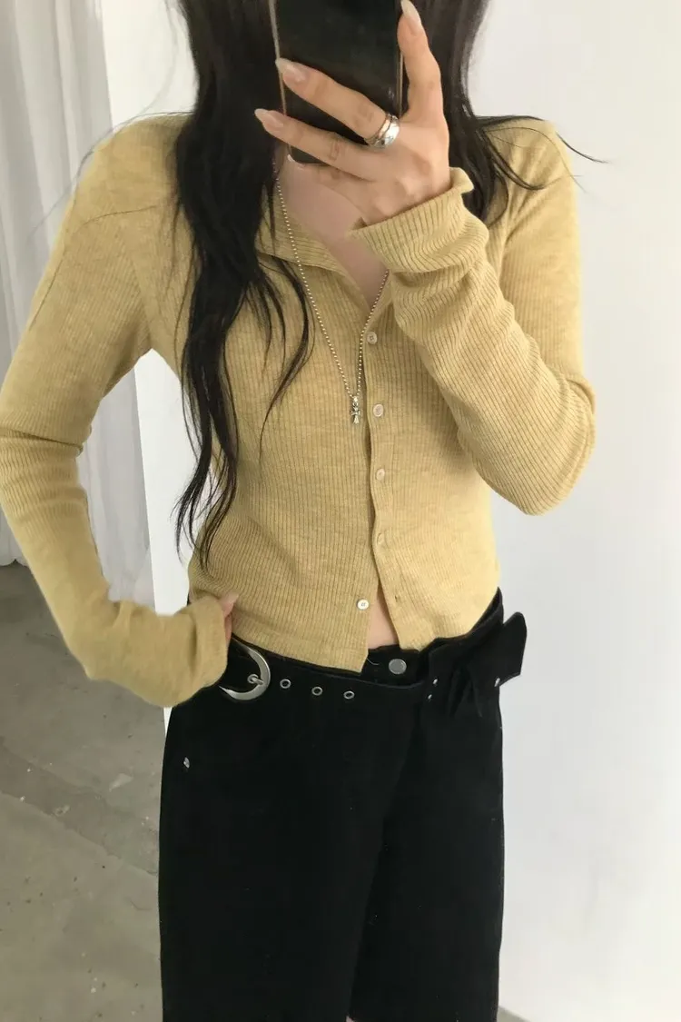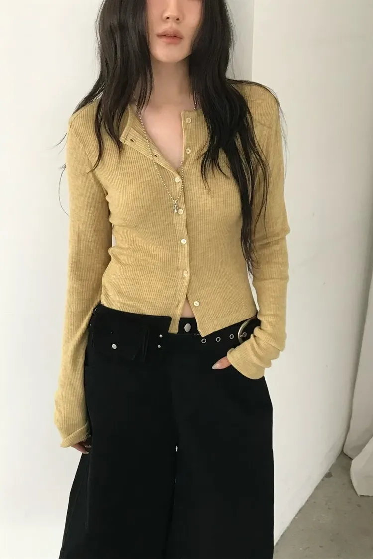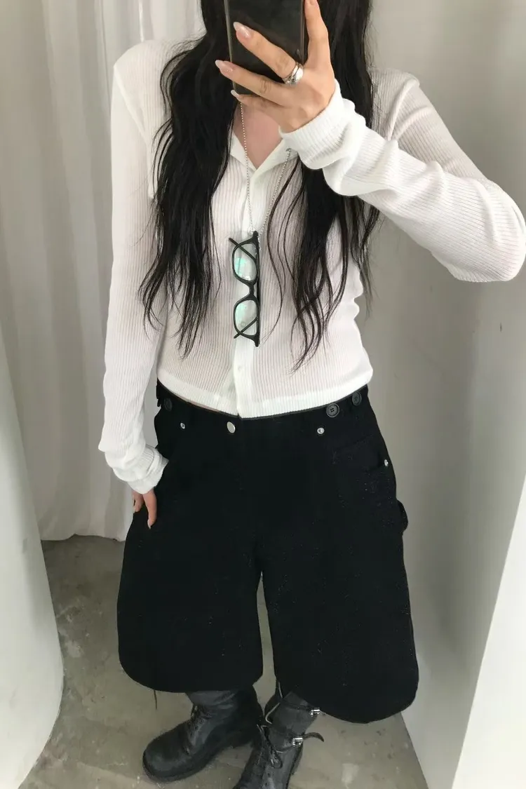 直紋壓褶開釦衫
