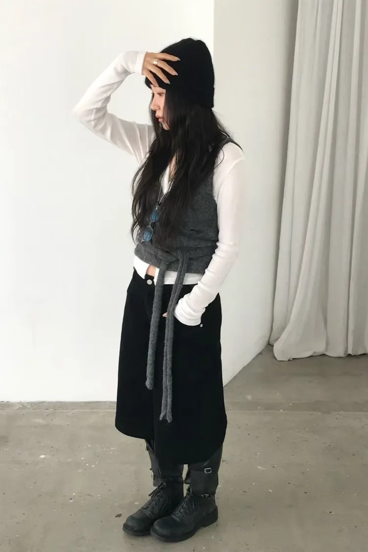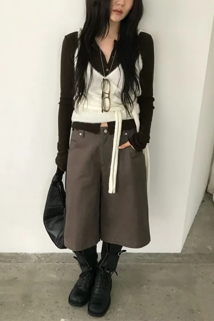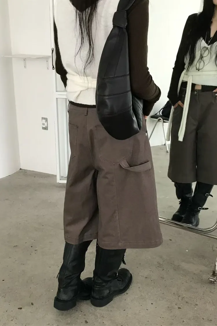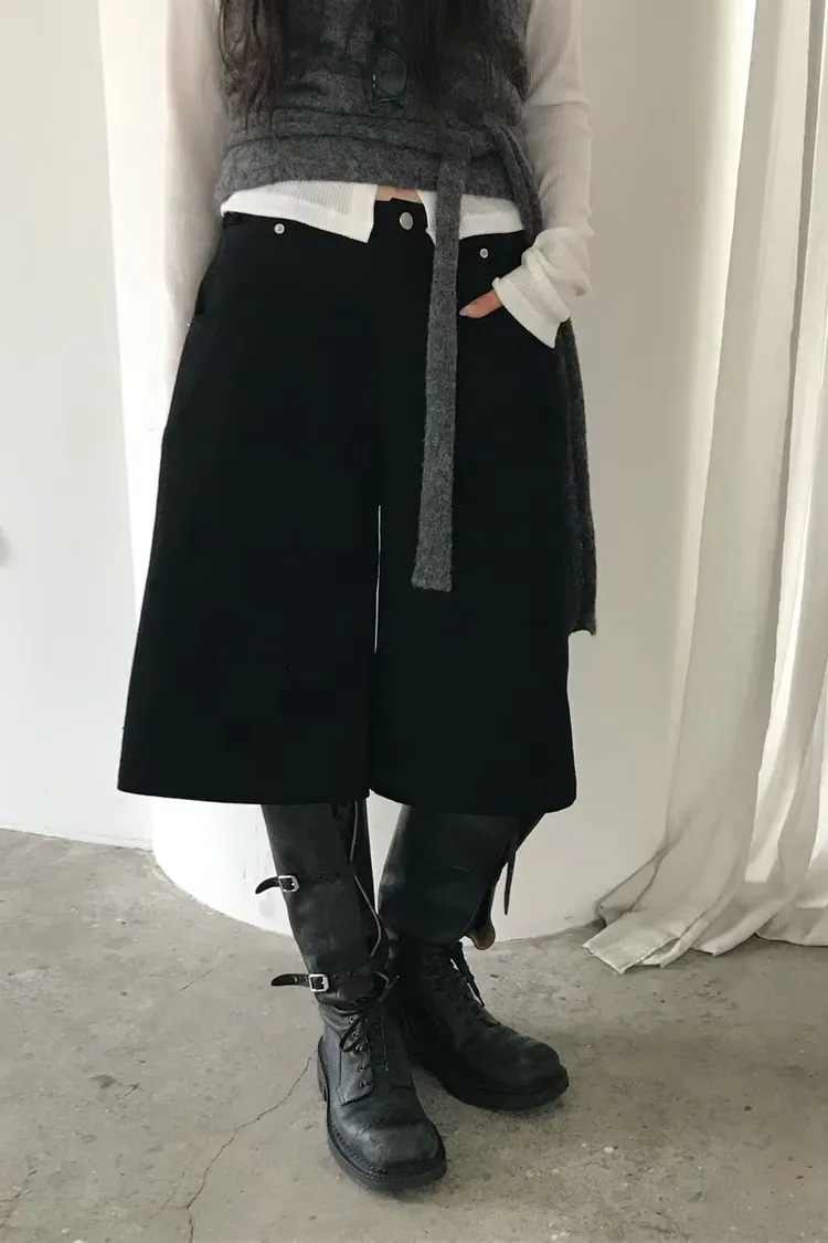 洗舊過膝寬管褲